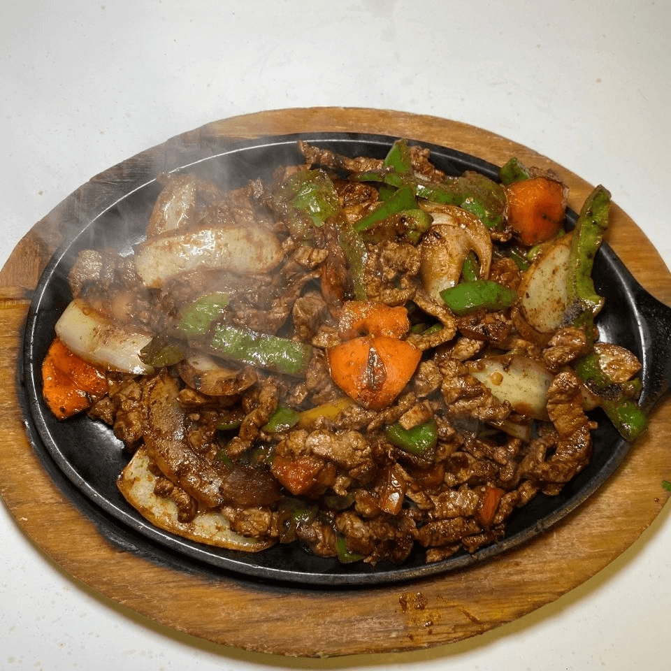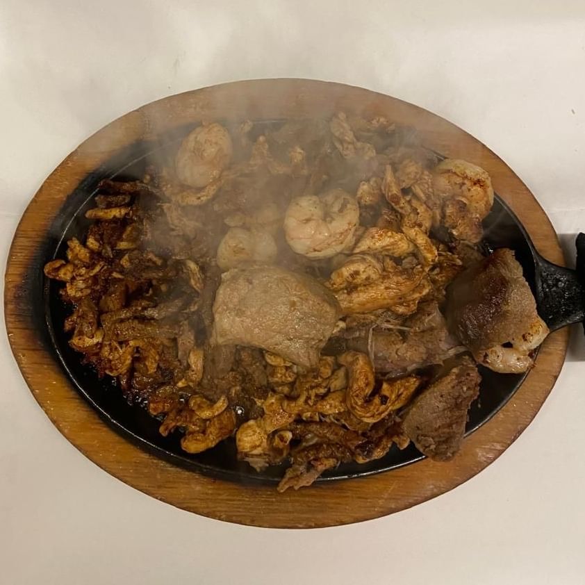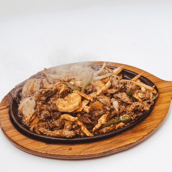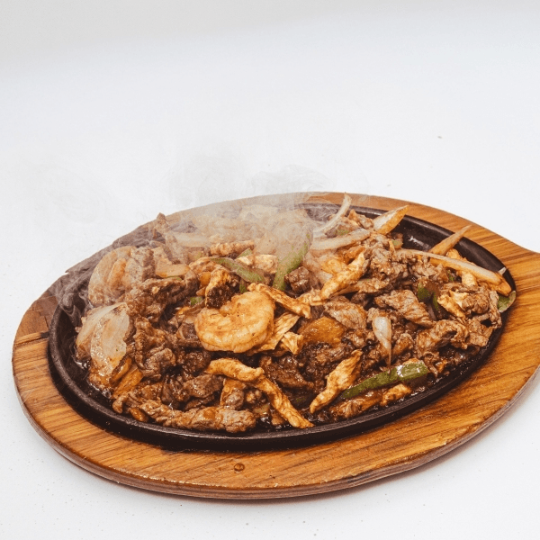 Strips of steak, chicken or mix, sautéed with tomato, onions, and jalapeño peppers. Served with rice, beans and tortillas