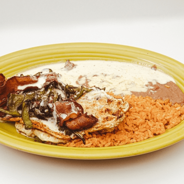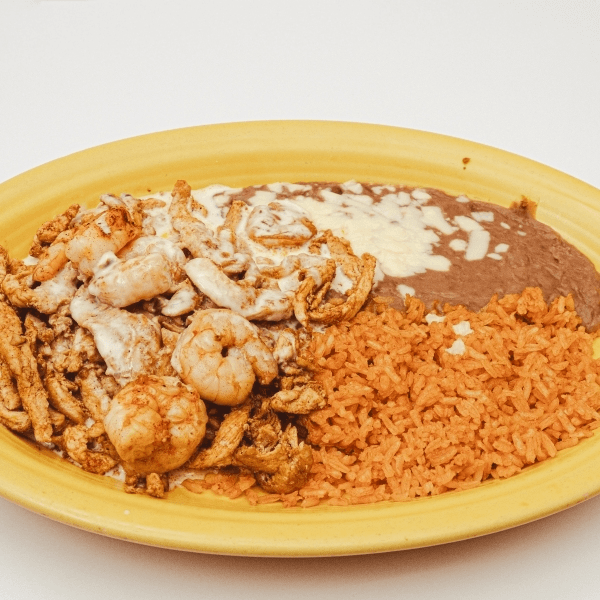 Chicken breast, one slice of steak, one cheese enchilada and Mexican rice. Served with rice and beans or substitute steamed veggies