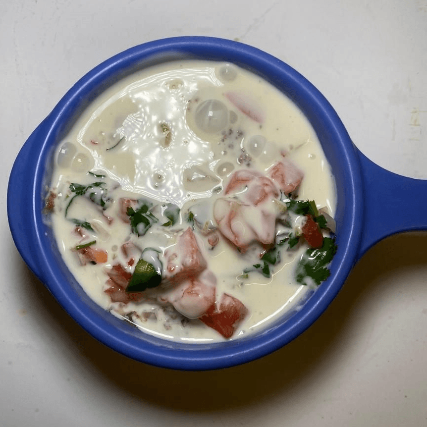 Cooked shrimp mixed with pico de gallo in a tomato juice cocktail. Topped with diced avocado