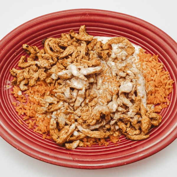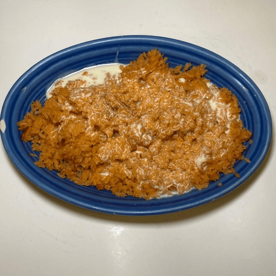 Popular. Mexican rice topped with grilled chicken and cheese sauce