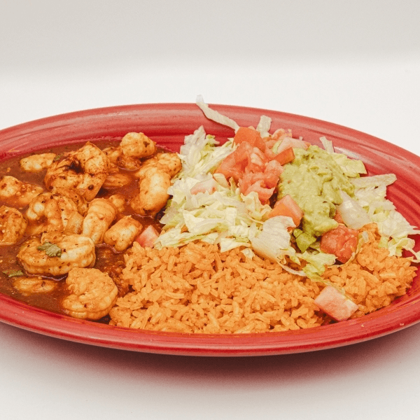Grilled shrimp cooked with onions, tomato, and cilantro. Served with rice and beans