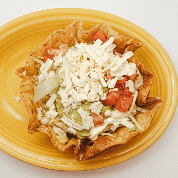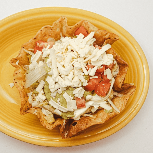 Popular. Ground beef served in a crispy tortilla bowl, typically includes lettuce, tomatoes, cheese, and sour cream